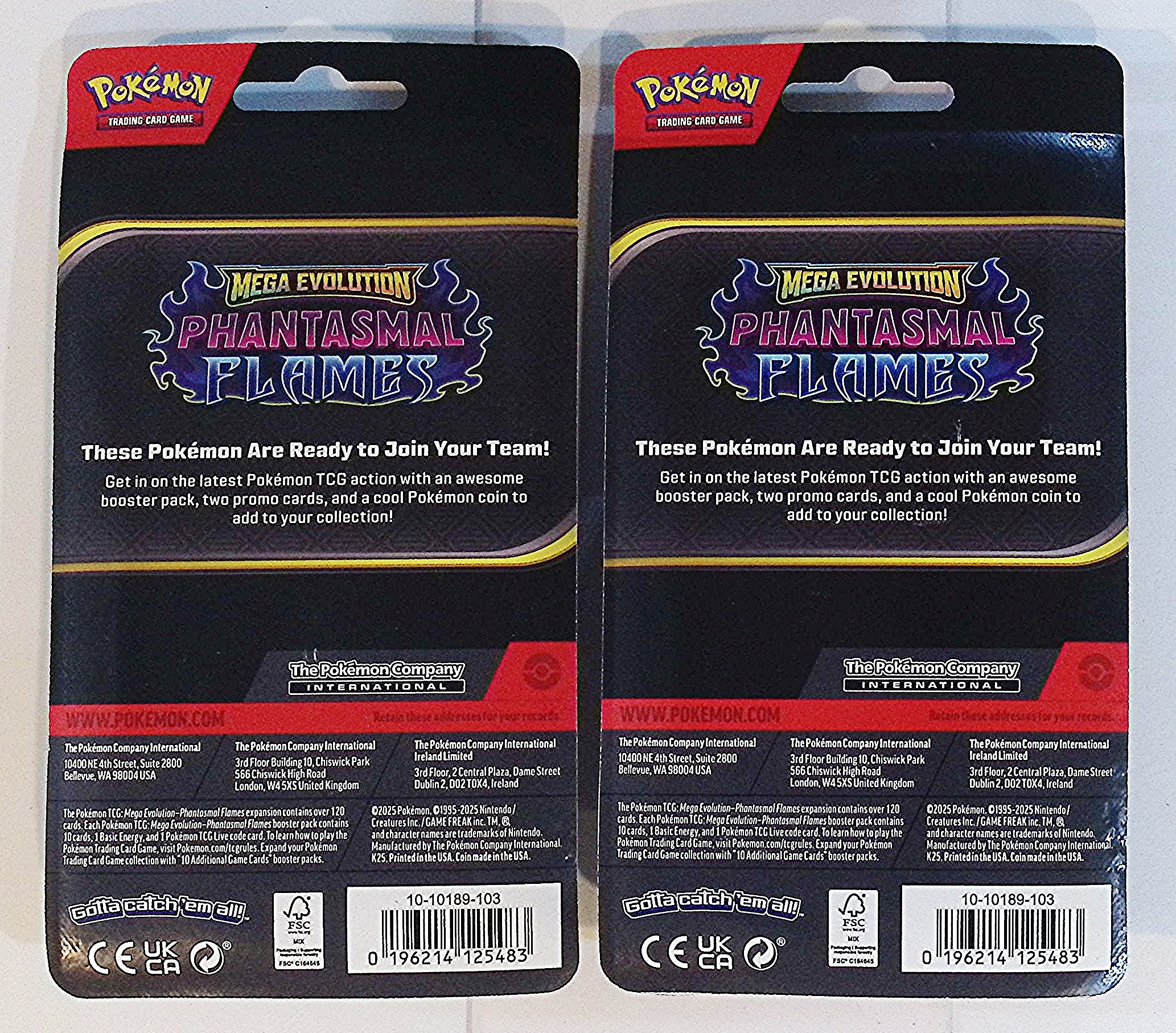 2 COUNT: Pokemon Mega Evolutions Phantasmal Flames Single Booster Blister Hanger w/ 1 Coin & 2 Promo Cards