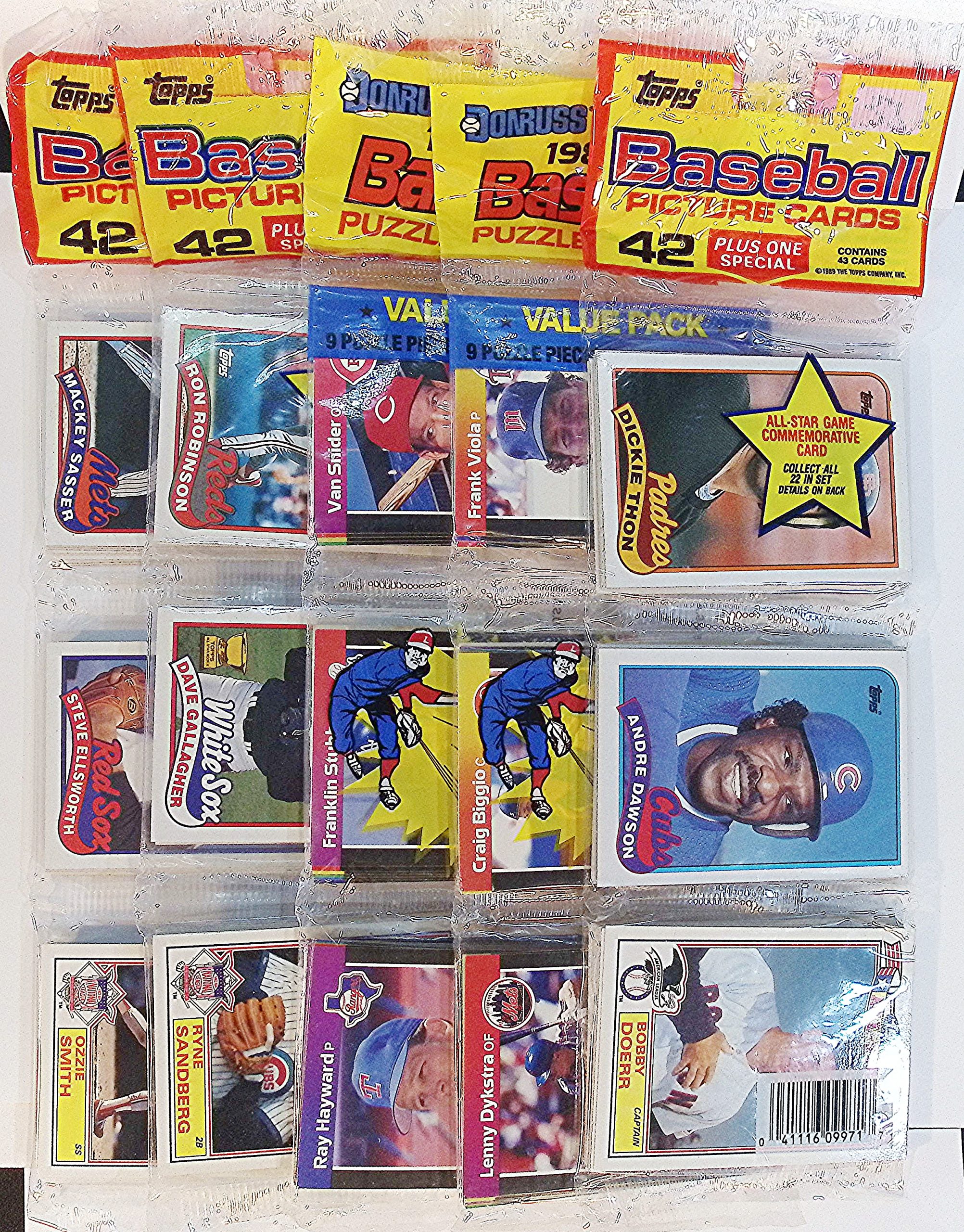 5 – Vintage 1989 Baseball Card Rack Packs: 3 Topps & 2 Donruss. On Front Ryne Sandberg, Back Nolan Ryan & Pete Rose