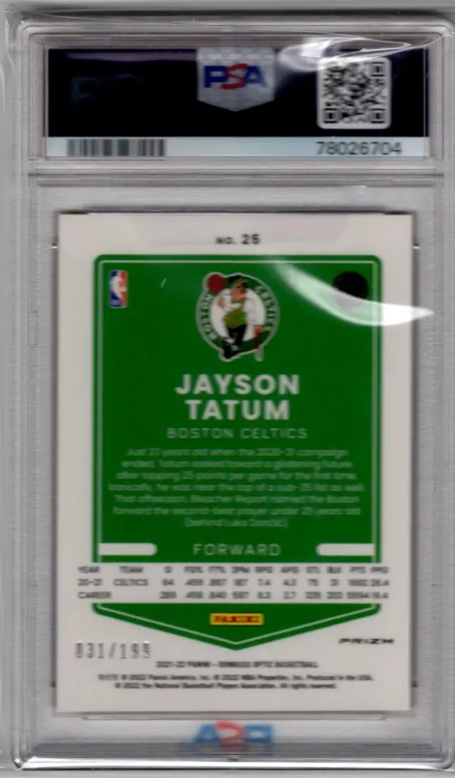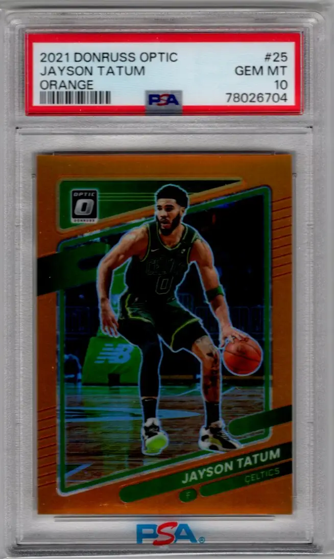 Jayson Tatum Orange Prizm /199 2021-22 Donruss Optic #25 PSA 10 Boston Celtics