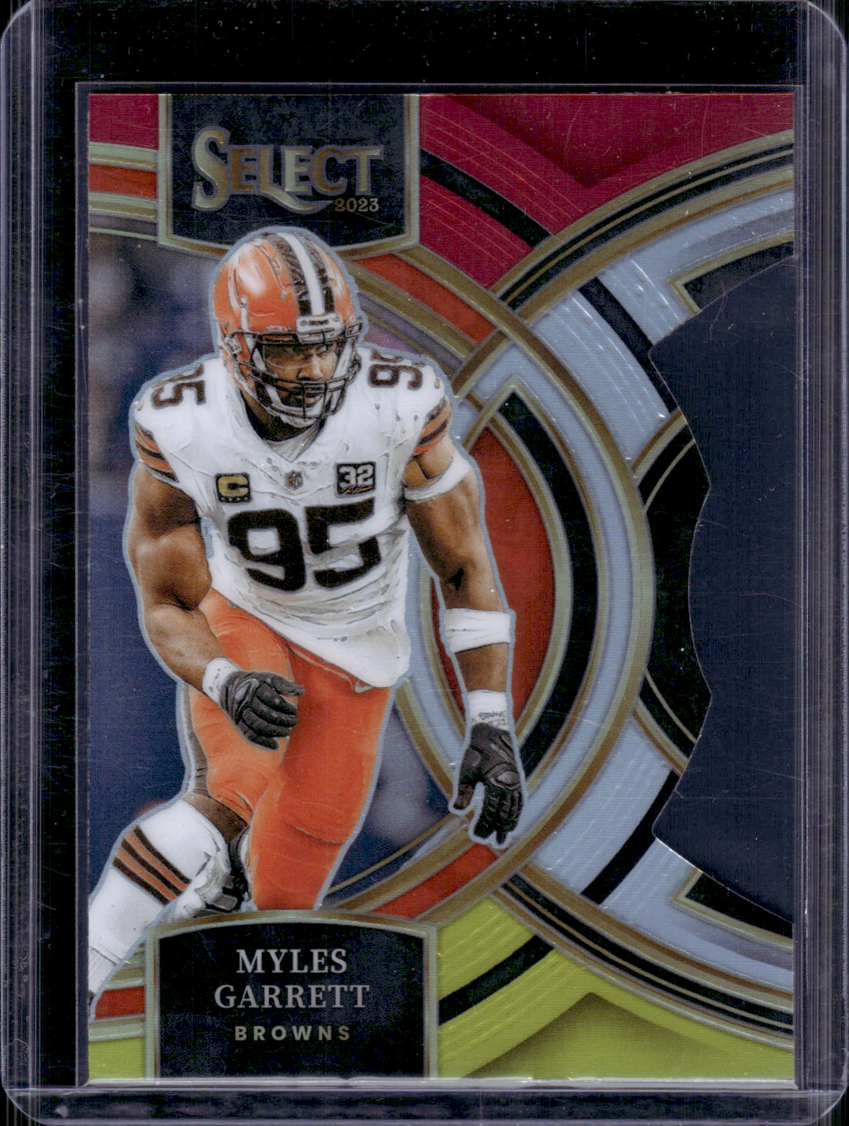 Myles Garrett Red/Yellow Prizm Die Cut 2023 Select #152 Cleveland Browns