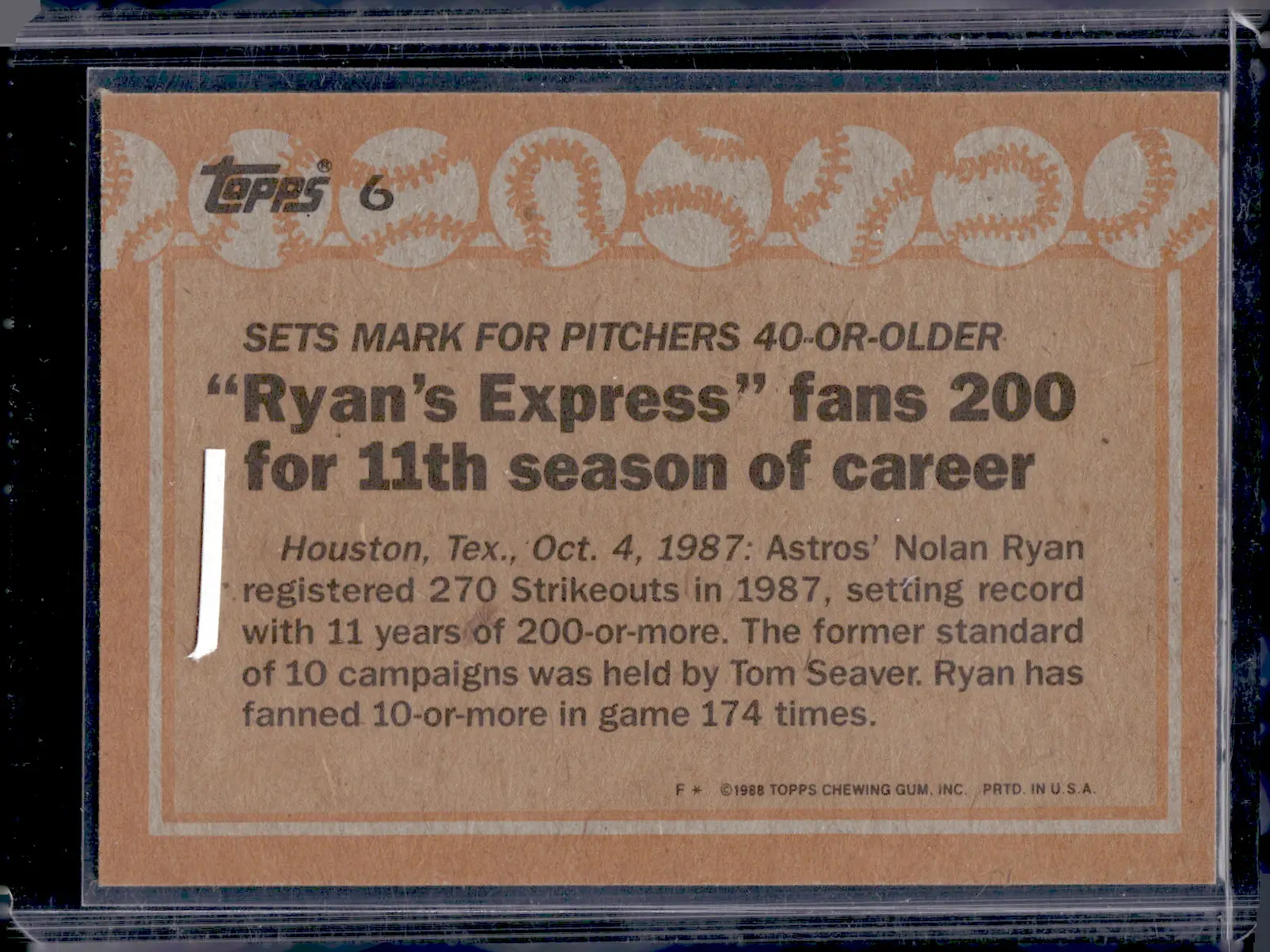Nolan Ryan ’87 Record Breaker 1988 Topps #6 Houston Astros