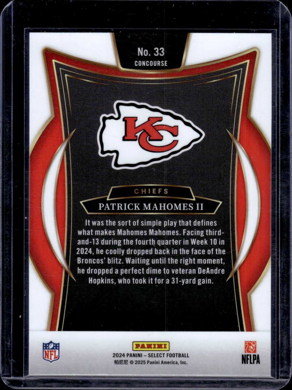 Patrick Mahomes 2024 Select #33 Kansas City Chiefs