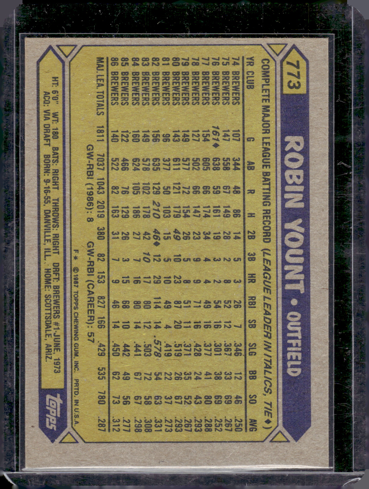 Robin Yount 1987 Topps #773 Milwaukee Brewers