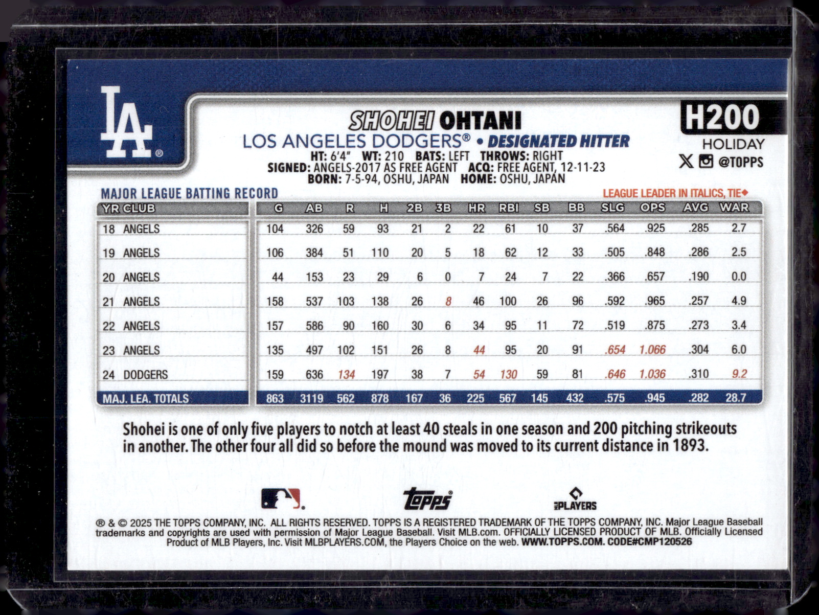 Shohei Ohtani 2025 Topps Holiday #H200 Los Angeles Dodgers